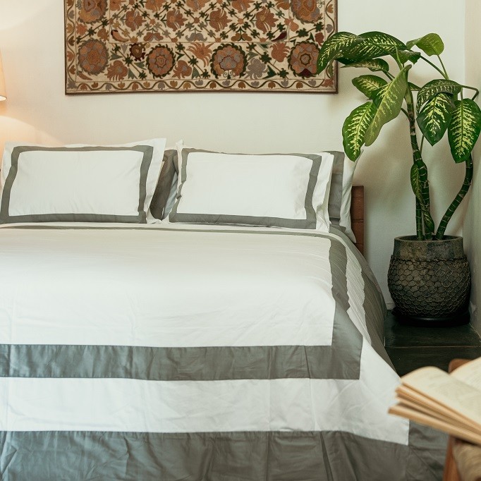 Indolinen Bed Set Deluxe Grey Double Border 100% Cotton