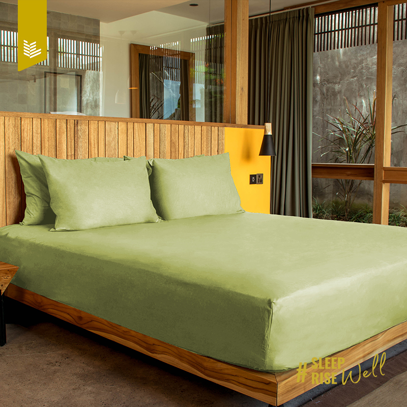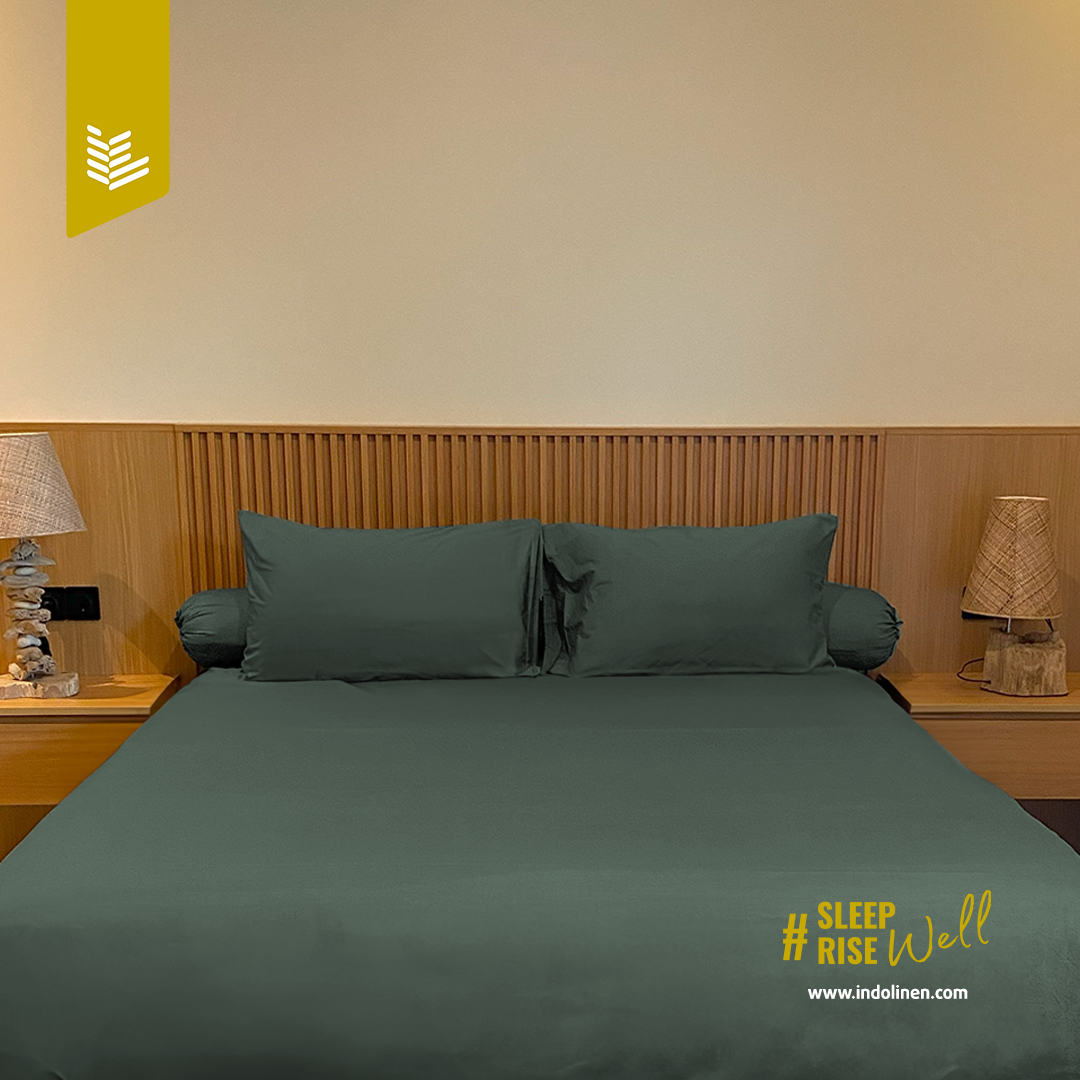 Indolinen Bed Set Sprei Berwarna Polos Premium 100% Cotton - Olive