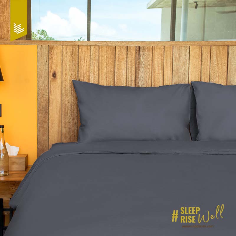 Indolinen Bed Set Sprei Berwarna Polos Premium 100% Cotton - Dark Grey