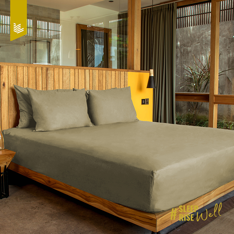 Indolinen Bed Set Sprei Berwarna Polos Premium 100% Cotton - Khaki