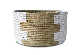 Round Basket Mendong Mix Rafia Natural White