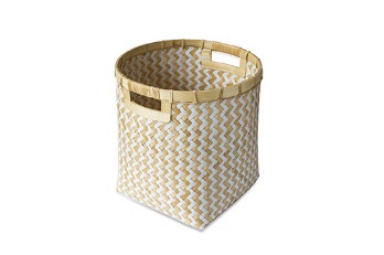 Round Zigzag Bamboo Basket Natural White